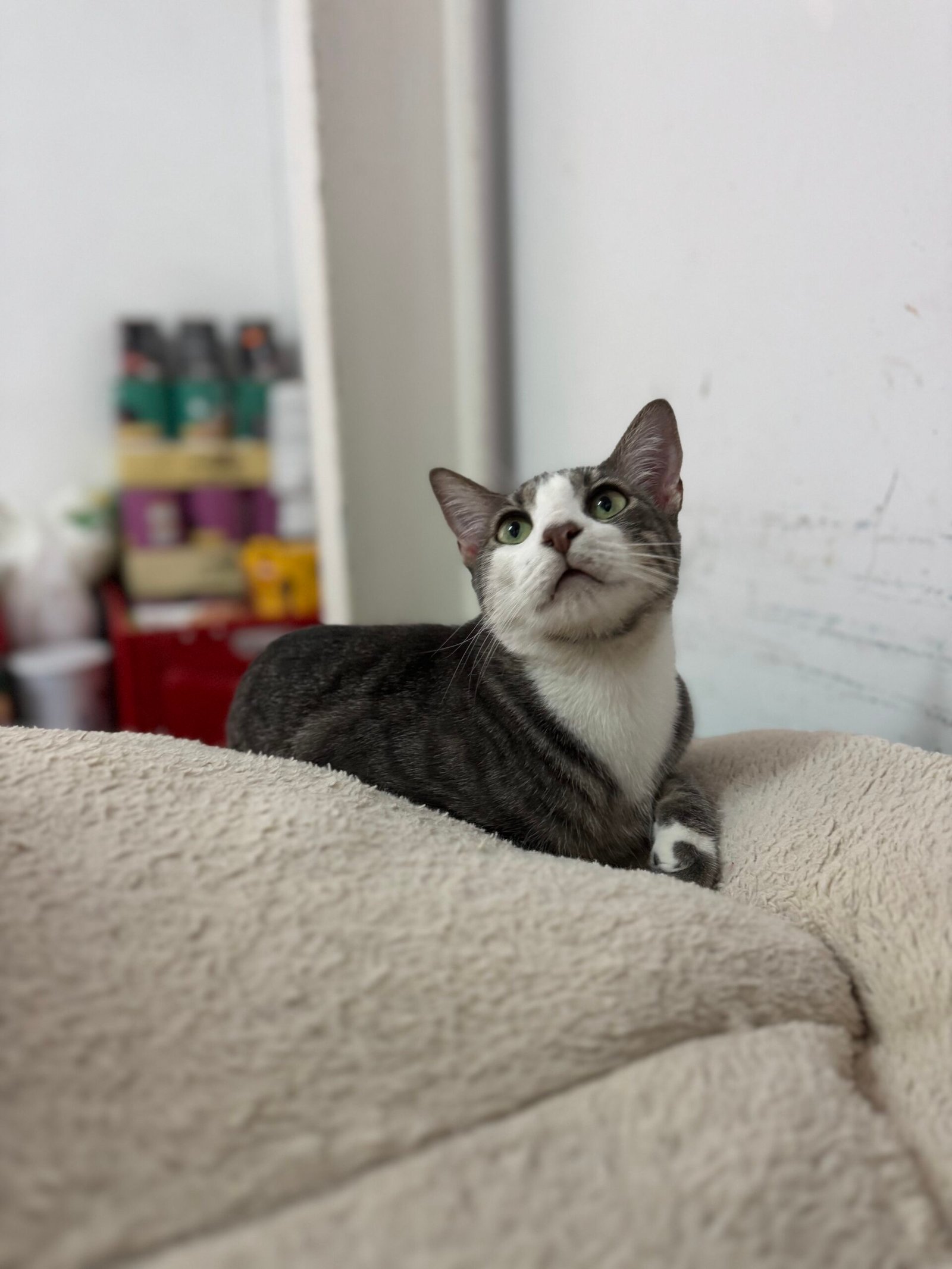 Fue recogida de una colonia cerca de una zona bastante transitada por los coches y su simpatía y carácter excepcional, la hacían bastante vulnerable.