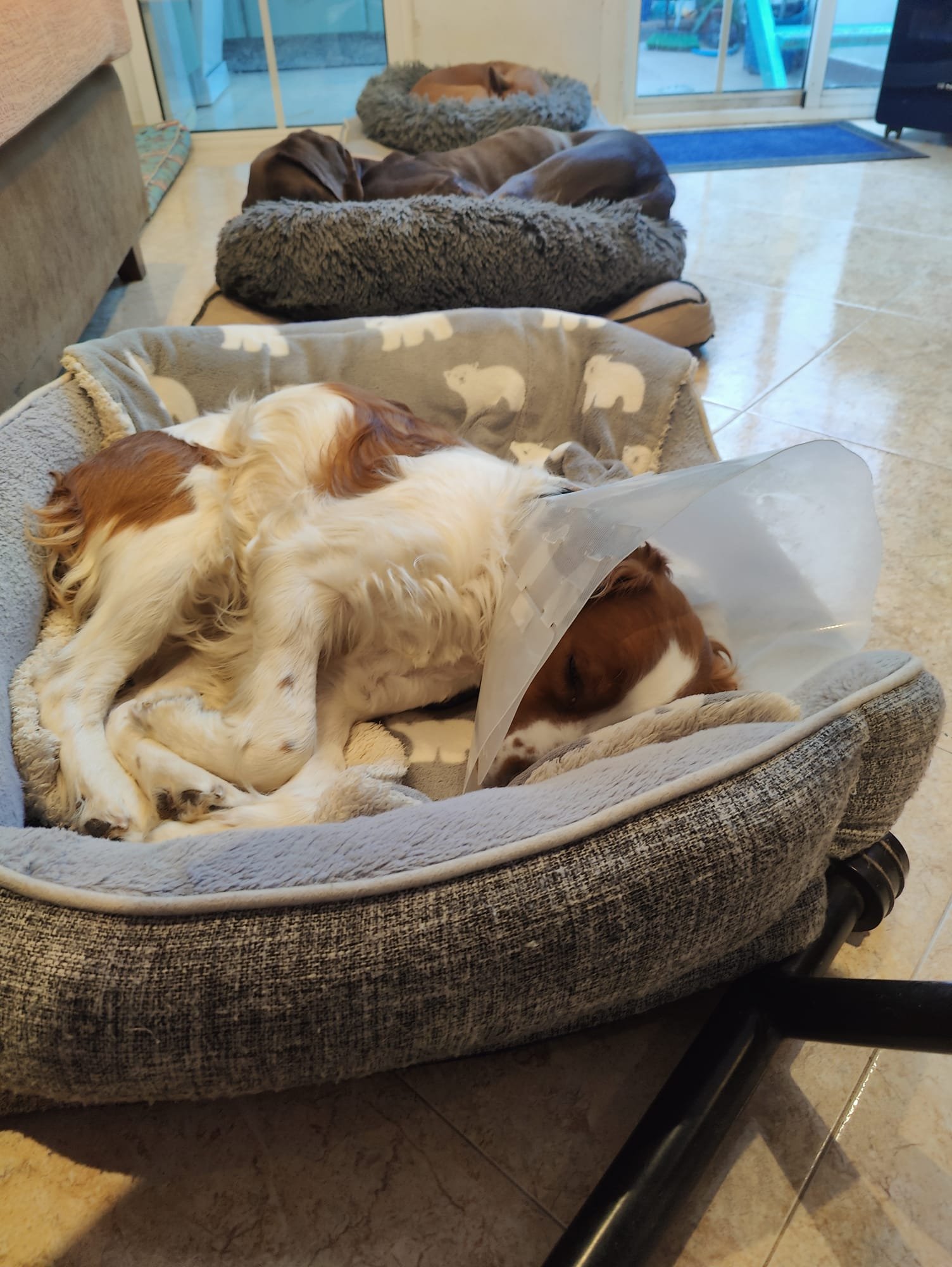 Actualmente se encuentra en una casa de acogida hasta finalizar su proceso de recuperación total. Posiblemente necesitará posterior rehabilitación de fisio para recuperar movilidad y musculatura.